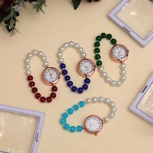 Elegant Pearl & Pink Beaded Watch Bracelet