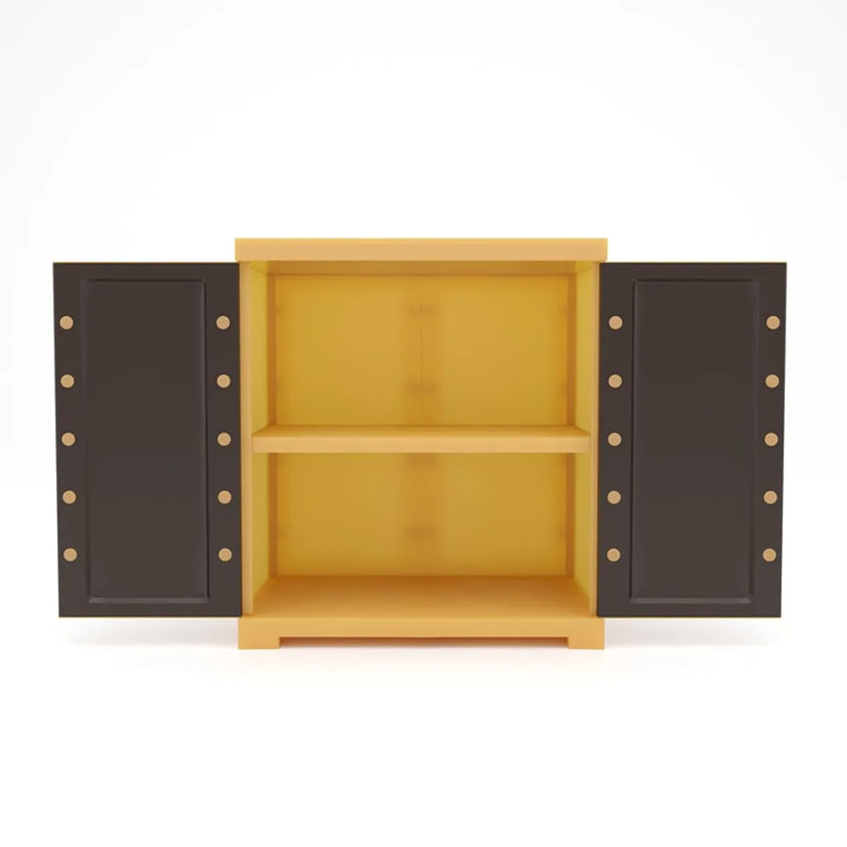 The cabinet features a spacious interior with well-balanced shelving that allows you to neatly store books, toys, daily essentials, documents, décor items, or household accessories. The dual-door design keeps your belongings protected from dust while maintaining a clutter-free appearance. Smooth-opening doors ensure easy access, making daily use comfortable and convenient.