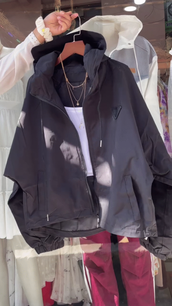 Stay cozy and stylish with this beige hooded jacket ensemble, designed for women who love functional fashion with a touch of elegance. Featuring a zip-up front, white drawstrings, and elastic cuffs, this jacket is layered over a classic white tank top and accessorized with gold necklaces—perfect for boutique displays, catalog shoots, or WhatsApp fashion campaigns.