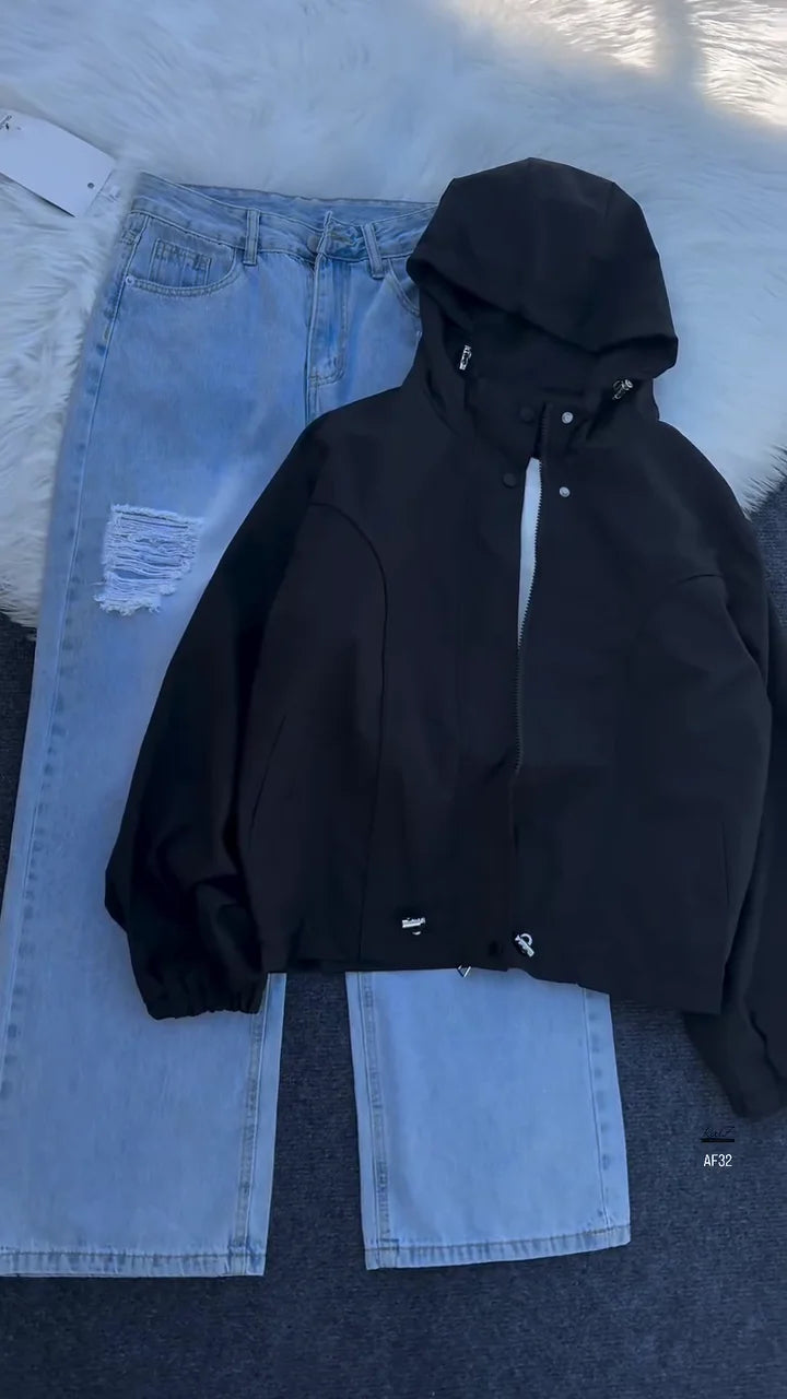 This crop windcheater jacket is designed to be lightweight and easy to wear. The fabric feels comfortable on the skin and allows free movement, making it perfect for active days. Its simple cropped style adds a modern and sporty touch.
